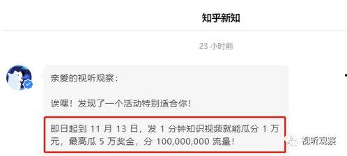 3. 平台活动:有时候,知乎会举办一些特定的活动,比如“寻找最美家乡”、“揭秘黑科技”等,在这些活动中,如果你提供的爆料视频符合活动要求,就有机会获得奖金。